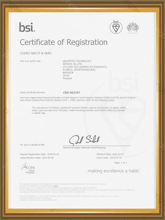 การผลิตได้ผ่านมาตรฐานการผลิตในระบบสากล ความสะอาด ความปลอดภัย