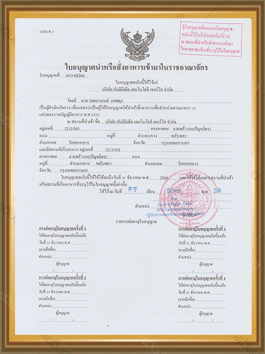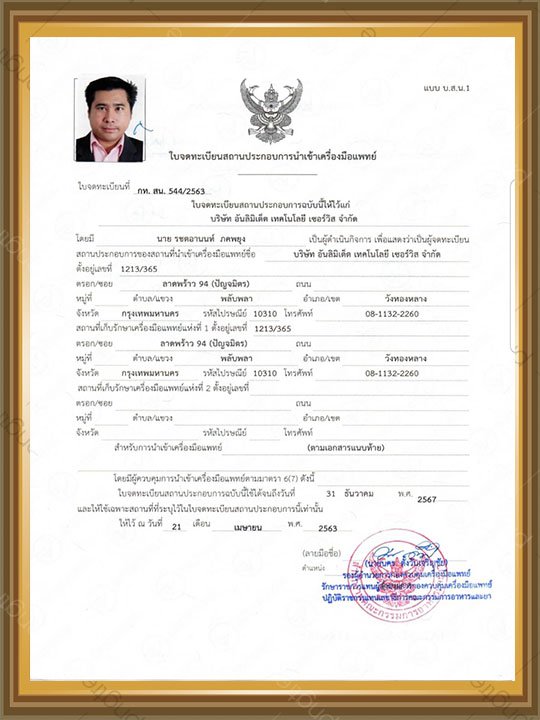 ใบอนุญาตินำเข้าเครื่องมือการแพทย์