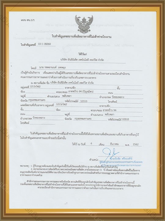 ใบรับรองมาตรฐาน GHPs & HACCP