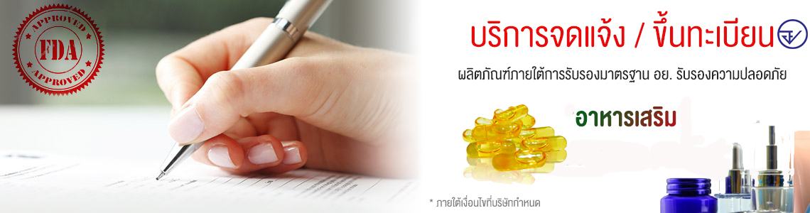 • ในกรณีที่ยังไม่มีทะเบียนตรงตามลูกค้า บริษัทฯจะมีเจ้าหน้ายื่นทะเบียนผลิตภัณฑ์ตามสูตรที่ตกลงกับลูกค้า โดยลูกค้าสามารถตั้งชื่อผลิตภัณฑ์ได้ตามใจลูกค้า แต่ชื่อต้องได้รับอนุมัติจากสำนักคณะอาหารและยา